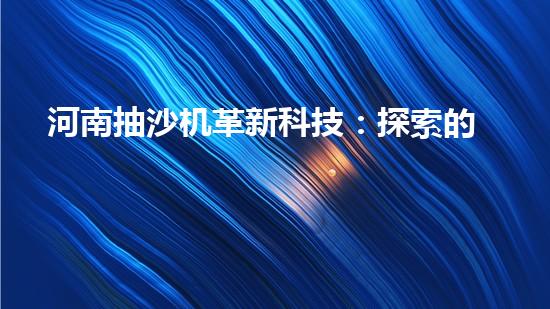 河南抽沙機革新科技:探索的未來?